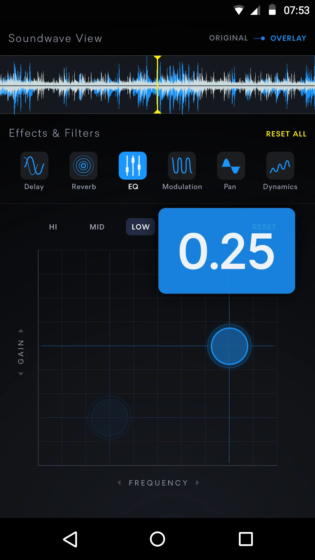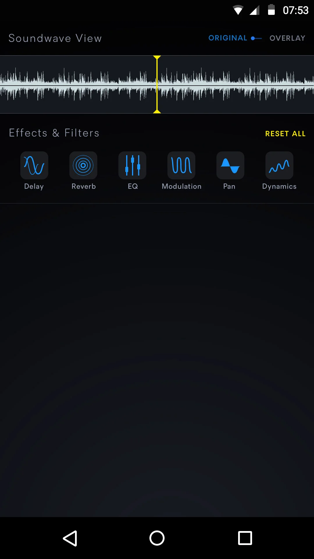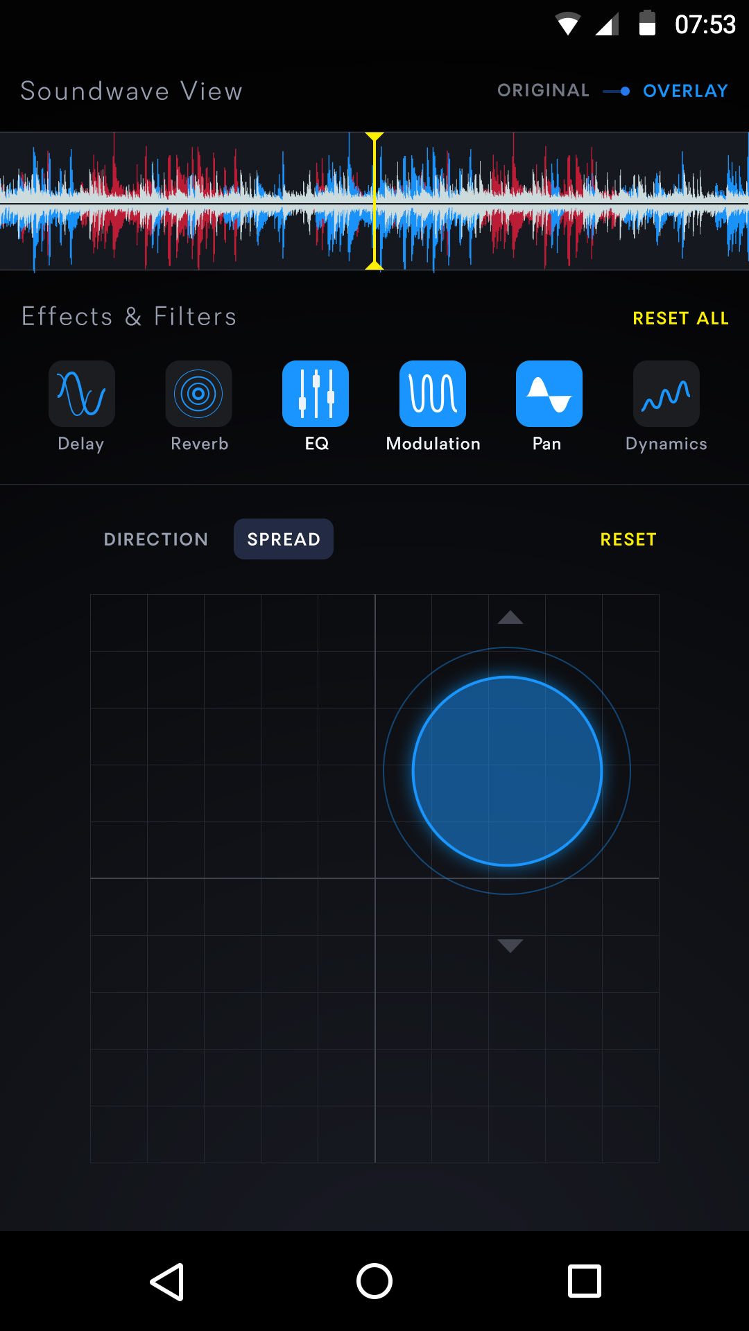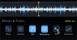 Interface for an audio effects app, with simple drag effect controls and adjustments