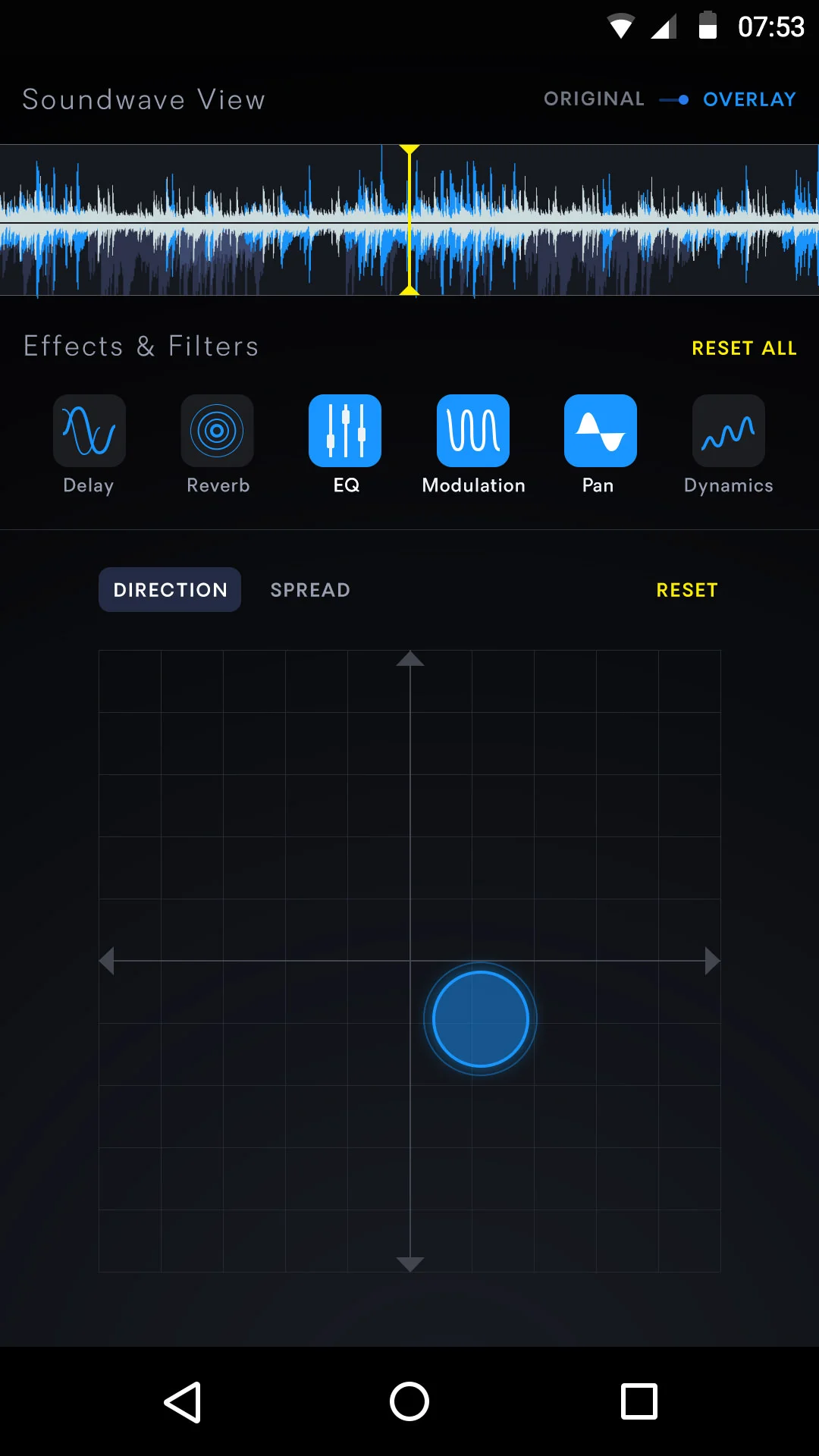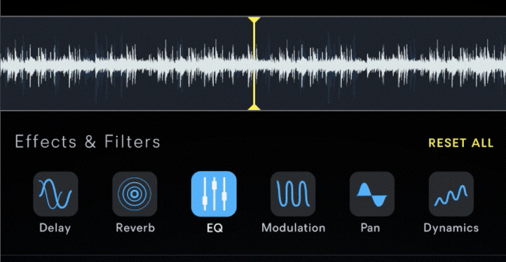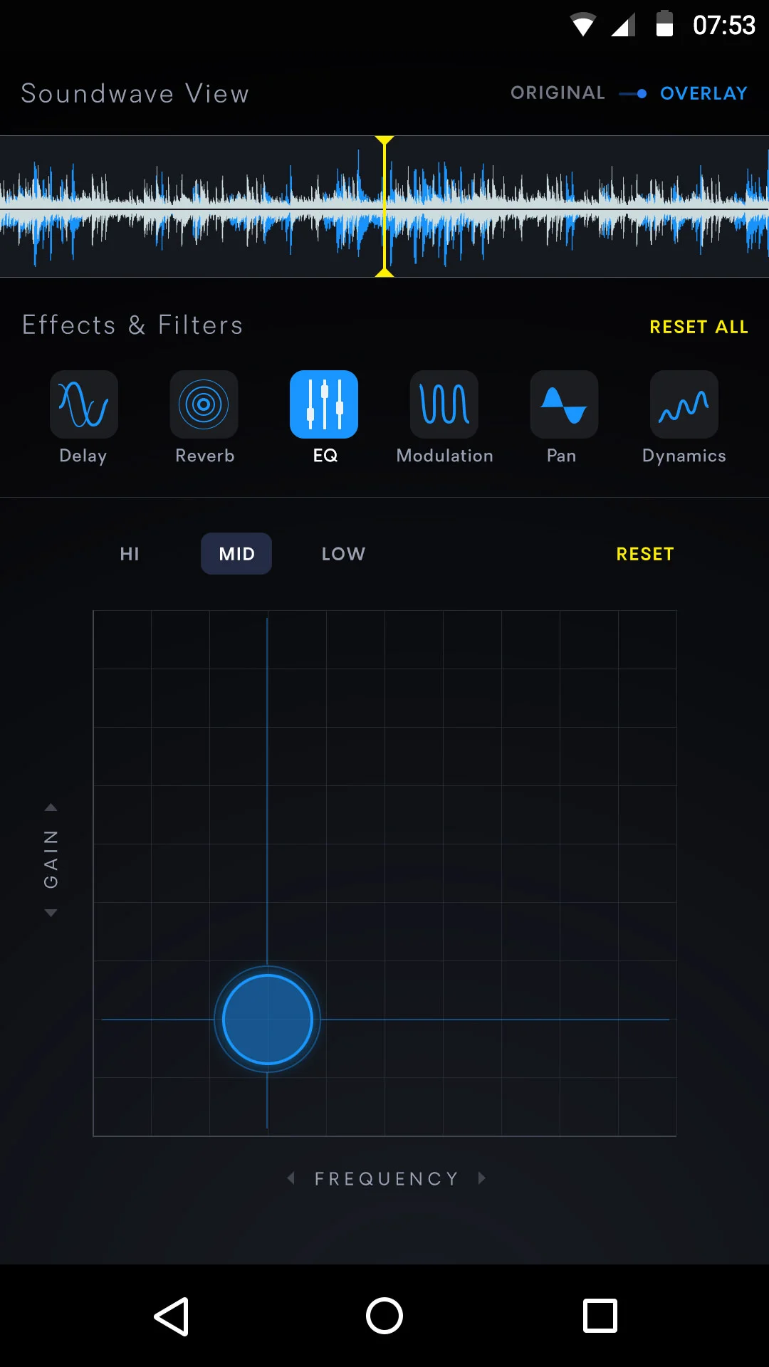 Interface for an audio effects app, with simple drag effect controls and adjustments