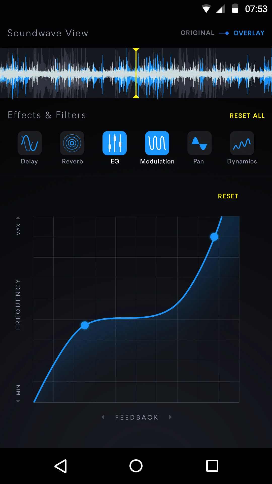 Overlaying the visual effect on audio wave in real-time gives the immediate feedback on changes to the audioform.